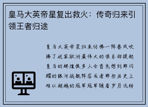 法甲的传奇之路:明星前锋的崛起与影响法国甲级联赛(简称“法甲”)一直是欧洲足坛培养顶级攻击手的沃土。从20世纪80年代到今天,这里孕育了无数足球巨星,他们用天赋与努力书写了属于自己的足球传奇。或许最具代表性的,要数那些在法甲崭露头角、最终登上国际舞台的前锋,比如亨利、特雷泽盖、以及如今的姆巴佩。 亨利的传奇:从摩纳哥到阿森纳,他被誉为“法国的天才少年”。在摩纳哥,他展现了超凡的进攻能力,身手敏捷、...